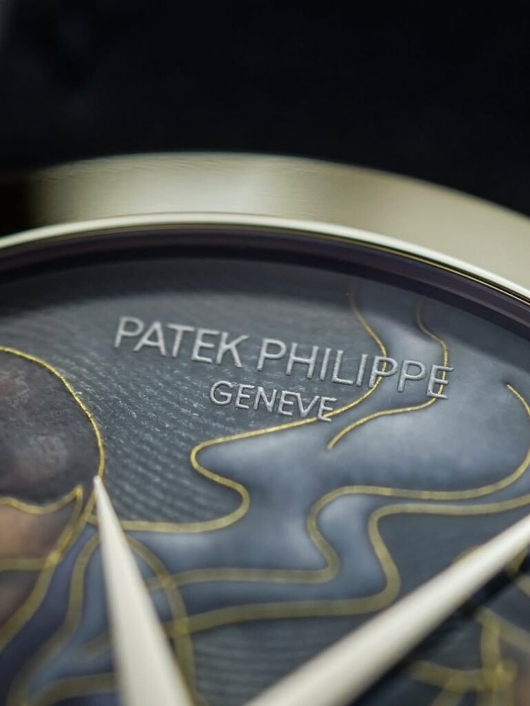 The artistic dial is framed by a classic Calatrava case, reinforcing the idea that this is both a timepiece and a work of art.
